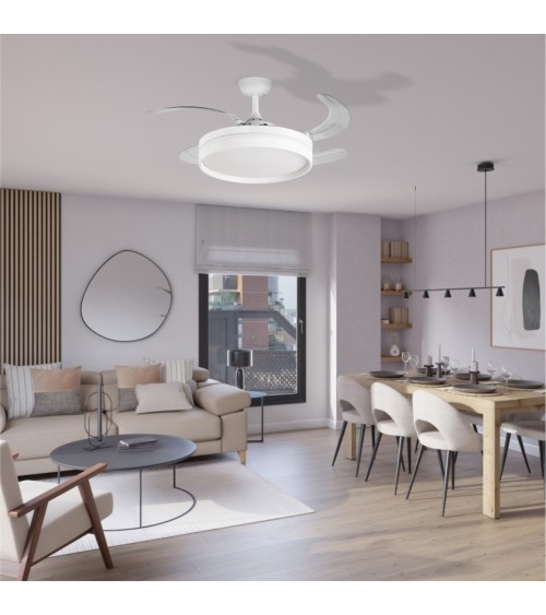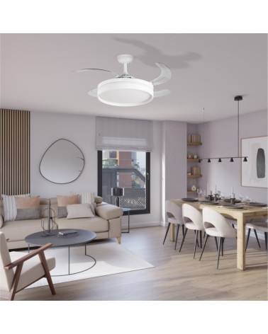 Ventilador techo retráctil, clasificación A, calidad premium, motor DC 40W, mando a distancia, Luz LED 3 tonos 36W, FALESIA