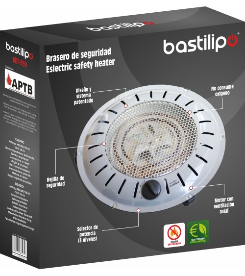 Brasero de seguridad, sistema de seguridad patentado, 450/500/950W, cable 3 metros, modelo BET-950