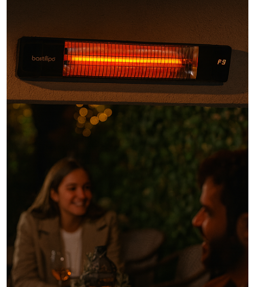 PROMETEO-E-1500, Estufa para exterior empotrable, 1500W, Mando a distancia, resistencias de infrarrojo de amplio expectro.